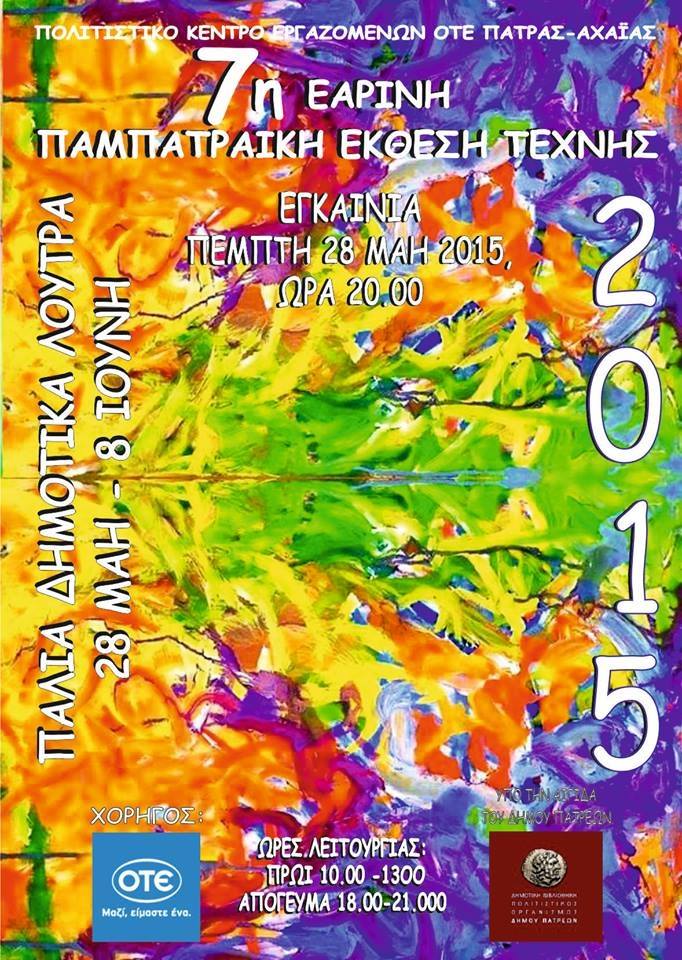 Ύστερα από την επιτυχία της 6ης Εαρινής Παμπατραϊκής Έκθεσης Τέχνης το Μάιο του 2014, το Πολιτιστικό Κέντρο Εργαζομένων ΟΤΕ Πάτρας- Αχαΐας με τη συνεργασία της εικαστικής επιτροπής που αποτελείται από τους Βασίλη Καραβασίλη, Κίττυ Σταγκοπούλου και Νίκο Στεφανόπουλο, επαναλαμβάνει φέτος τη διοργάνωση που έγινε θεσμός για την Πόλη μας.