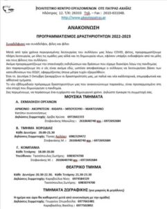 ΠΡΟΓΡΑΜΜΑΤΙΣΜΟΣ ΔΡΑΣΤΗΡΙΟΤΗΤΩΝ 2022-2023